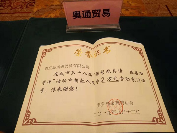 8月13日上午,2019年秦皇島市“福彩獻(xiàn)真情•慈善助學(xué)子”助學(xué)金發(fā)放儀式在秦皇島大酒店舉行。市委副書記丁偉、市人大常委會副主任曹玉寶、市政府副市長廉茹艷、市政協(xié)副主席鄭泉出席儀式。今年是市民政局、市福彩中心、市慈善協(xié)會組織“福彩獻(xiàn)真情•慈善助學(xué)子”公益助學(xué)活動的第18年,也是我公司參與資助活動的第10年。在此活動持續(xù)開展的18年中,活動累計(jì)投入4100多萬元福彩公益金,資助了7300多名寒門學(xué)子圓夢大學(xué),成為我市作為“全國文明城市”“中國最具愛心城市”的深度實(shí)踐,贏得社會各界的廣泛贊揚(yáng)。出席儀式的市領(lǐng)導(dǎo)和市民政局局長趙懷木一起為受助學(xué)生代表發(fā)放了助學(xué)金,并為我公司及其它捐資助學(xué)的愛心企業(yè)頒發(fā)了榮譽(yù)證書。隨后,往屆受助學(xué)生代表向大家分享了自己在助學(xué)金的幫助下圓夢成長的故事,應(yīng)屆受助學(xué)生代表講述了自己坎坷的求學(xué)經(jīng)歷和得到資助后對未來美好生活的向往。希望他們一定要好好珍惜來之不易的求學(xué)機(jī)會,心懷感恩,努力學(xué)習(xí),不懼困難,不負(fù)光陰,立志成為建設(shè)祖國和家鄉(xiāng)的棟梁之才。