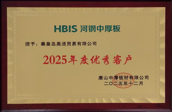 在河鋼集團(tuán)中厚板板塊的年度評(píng)選中,秦皇島奧通貿(mào)易有限公司憑借卓越的服務(wù)能力、堅(jiān)實(shí)的合作基礎(chǔ)以及良好的行業(yè)口碑,從眾多合作伙伴中脫穎而出,被授予“2025年度優(yōu)秀客戶”榮譽(yù)稱號(hào)。